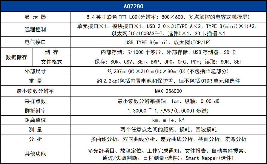 在光纤网络铺设和维护作业中,市场对现场测试设备的可靠性和易用性需求正在不断攀升。为响应这一需求,YOKOGAWA专门设计出全新的光时域反射仪(OTDR)-AQ7280系列,它们可以为现场技术人员提供既快速又精确的测量,使测量变得更从容。AQ7280应用广泛,可以满足从光接入网到核心网分析的所有测试测量需求。